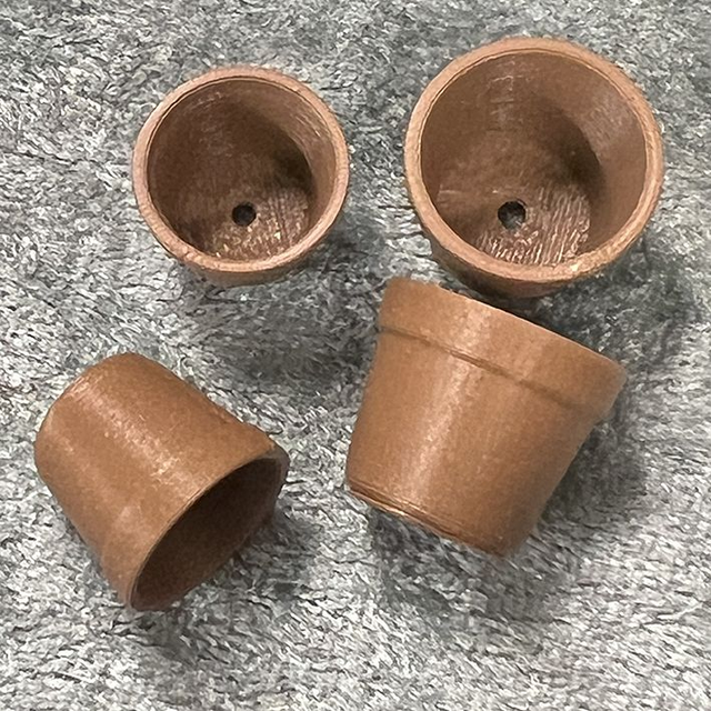 Kukkasen Puodin omaa tuotantoa olevat 3D-tulostetut kukkaruukut. Paketissa kahta kokoa, kumpaakin kaksi kappaletta. Soveltuvat niin 1:6 kuin 1:12 ja 1:18 -mittakaavoihin. Kaksi värivaihtoehtoa, musta ja ruskea. Valikoimastamme löytyy sekä näitä suurempia että pienempiä ruukkuja sisältävää ruukkusettiä.