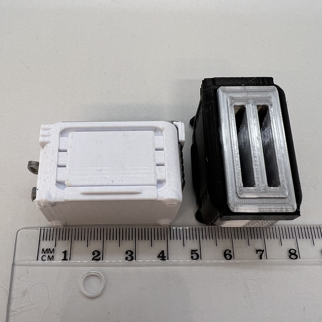 Joutsan Havumäessä suunniteltu ja 3D-tulostettu barbiekoon leivänpaahdin. Todella yksityiskohtainen; omassa urassaan leipien nostovipu (ei liiku), paahtoajan säädin sekä hätäkatkaisin. Saatavilla kaksi eri värivaihtoehtoa; musta ja valkoinen.